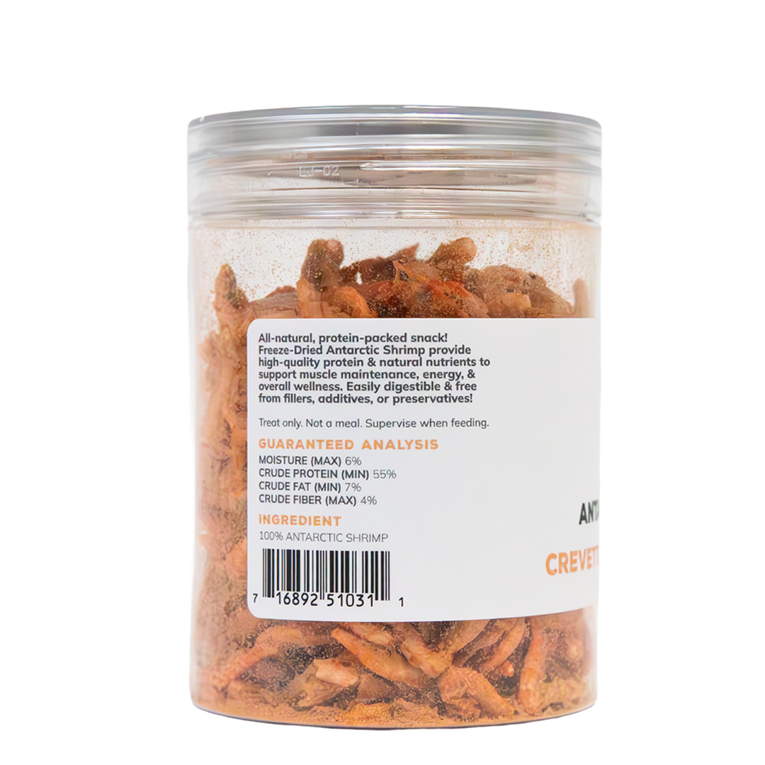 All-natural, protein-packed snack! Freeze-Dried Antarctic Shrimp provide high-quality protein & natural nutrients to support muscle maintenance, energy, & overall wellness. Easily digestible & free from fillers, additives, or preservatives!