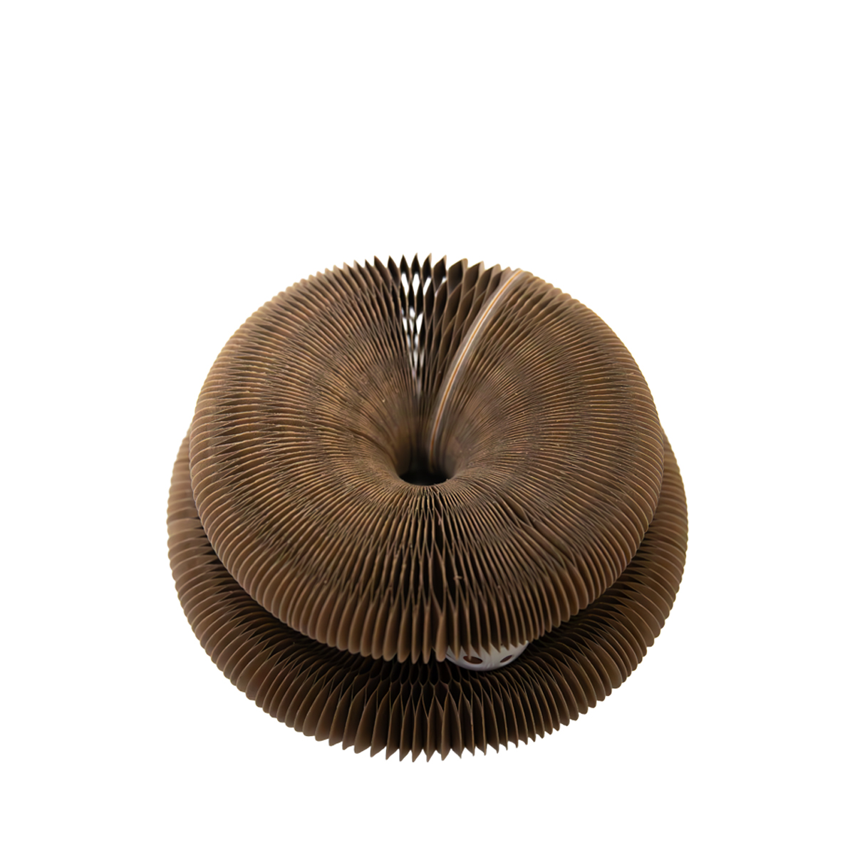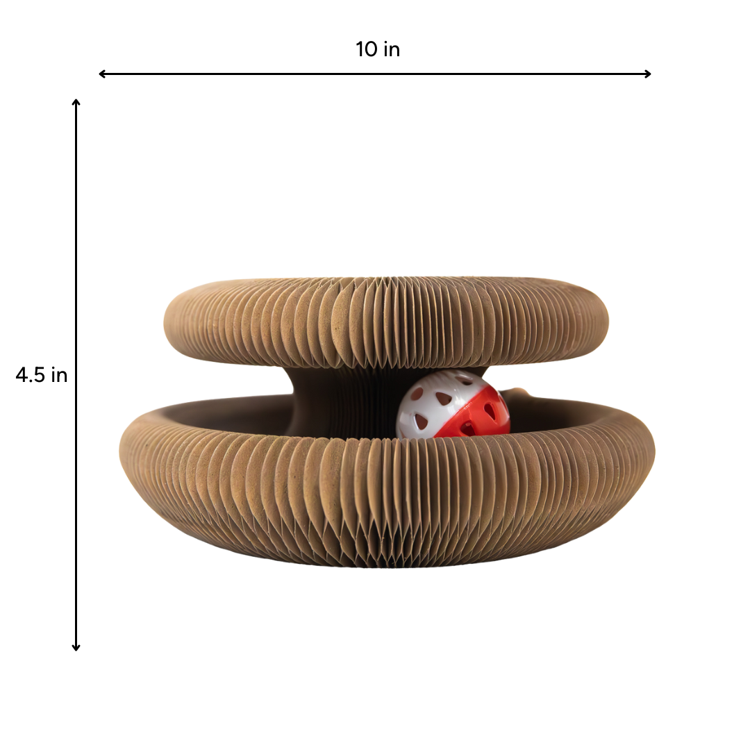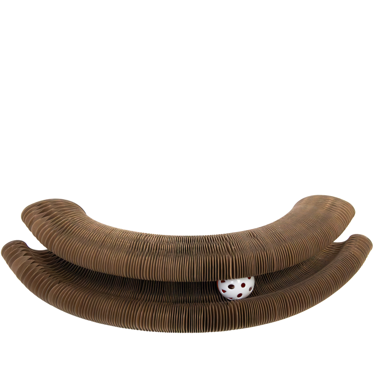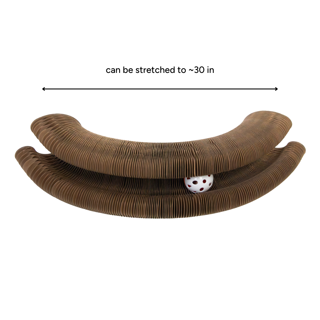 Ends are magnetic and scratcher can be stretched 3x its size to wrap around the base of a chair.